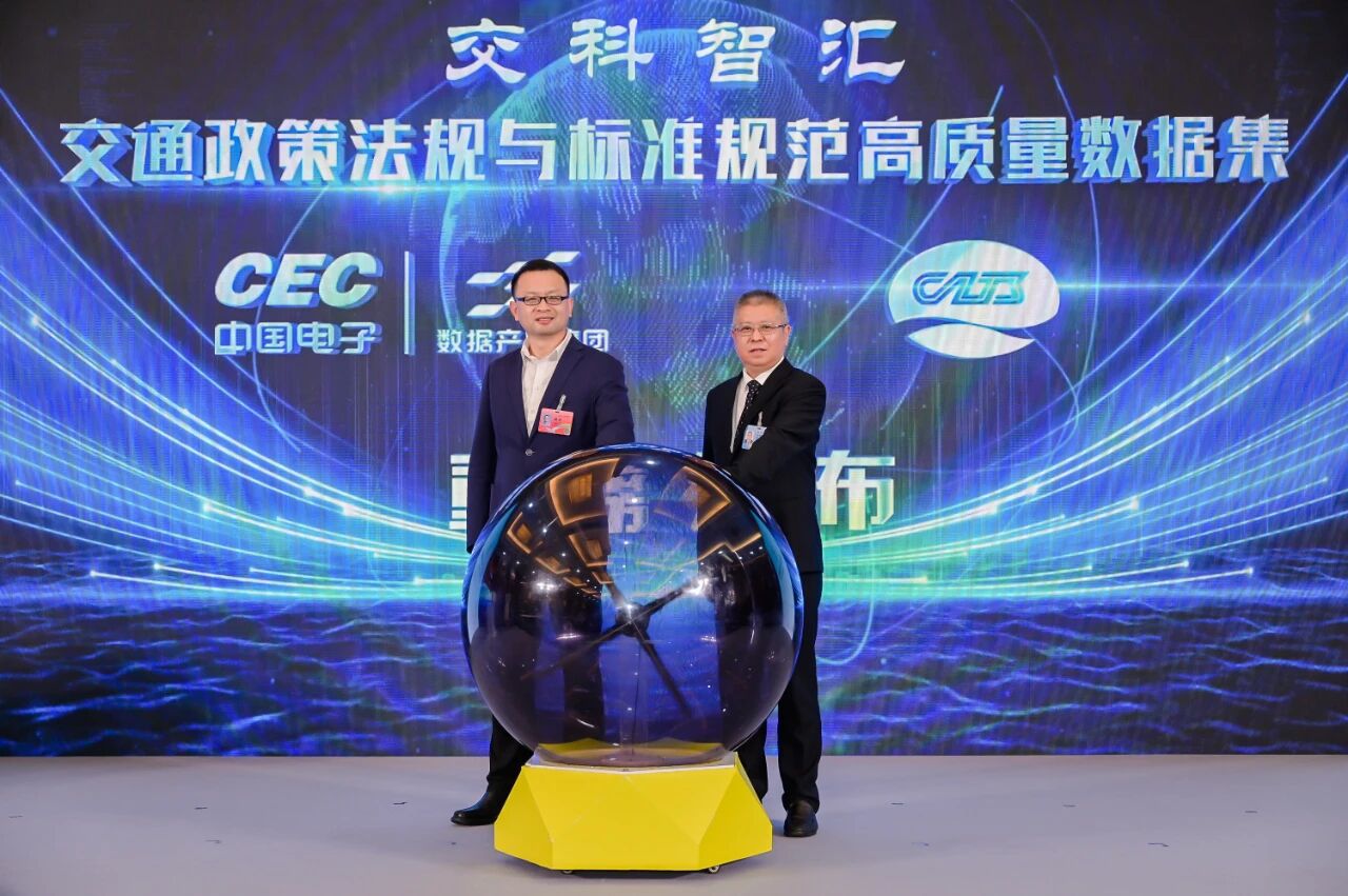 中国电子首席科学家蒋国飞发布了安全可信数据空间产品和数据集质量增强评估体系,并与交通运输部科学研究院副院长潘凤明共同发布“交科智汇·交通政策法规与标准规范高质量数据集”。